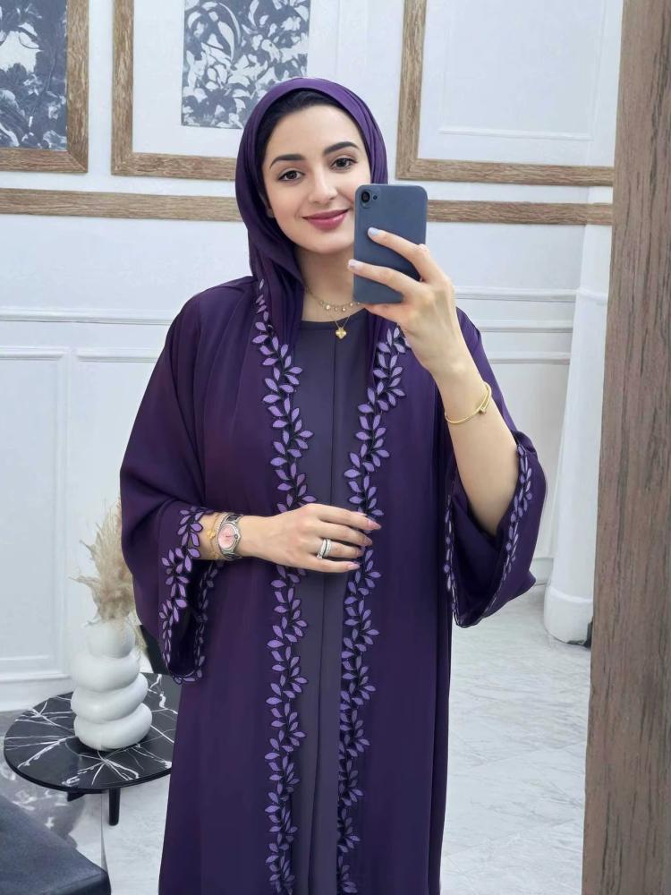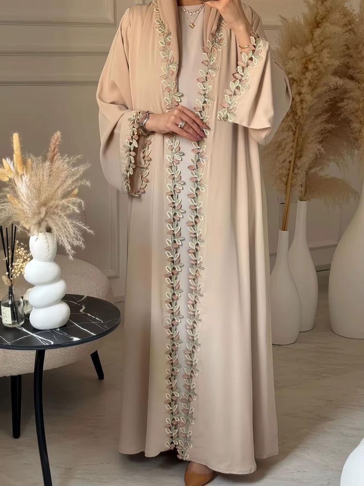 أضيفي لمسة فنية لإطلالتك اليومية مع عبّاية بتصميم فاخر وتطريز أوراق شجر ناعم يعبّر عن ذوقك الراقي.