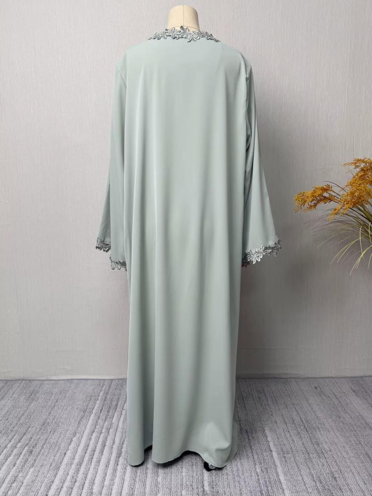 ✨ عبّاية مفتوحة بتطريز أوراق الشجر — أناقة فنية بكل تفصيلة 🌿