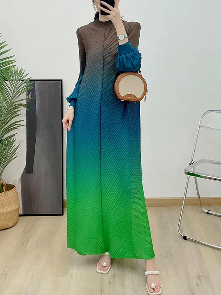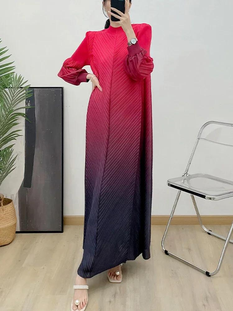 - فستان نسائي طويل بتفاصيل مطوية تضيف لمسة فنية وأنيقة تزيد من جمالية الفستان